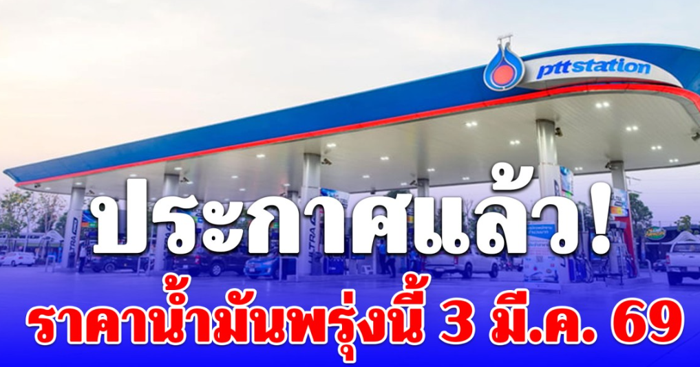 ประกาศแล้ว!! ราคาน้ำมันพรุ่งนี้ (3 มี.ค. 69)