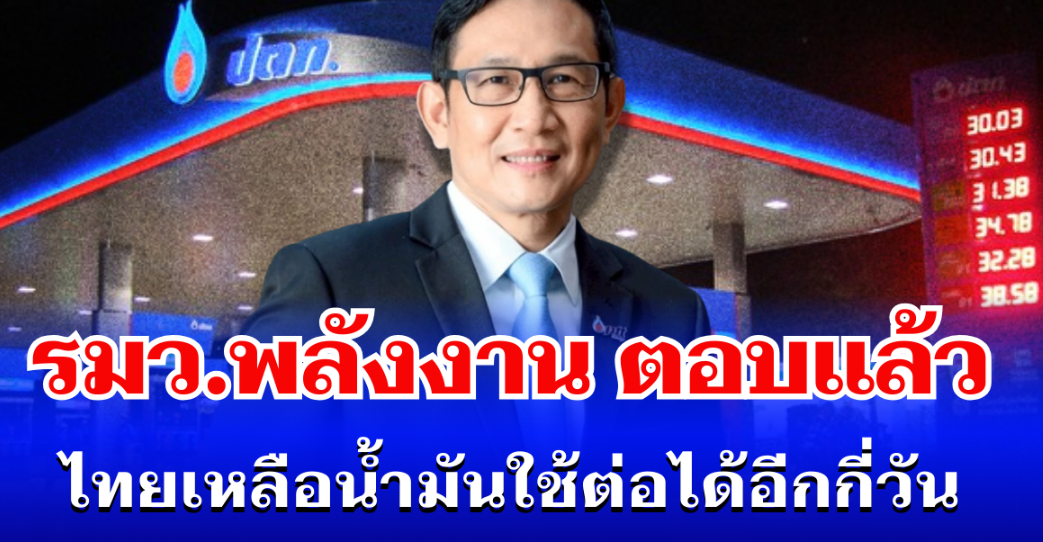 ชัดเจน! รมว.พลังงาน ตอบเเล้ว ไทยเหลือน้ำมันใช้ต่อได้อีกกี่วัน