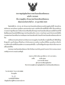 เมื่อวันที่ 24 กุมภาพันธ์ 2569 ศูนย์อุตุนิยมวิทยาภาคตะวันออกเฉียงเหนือตอนบน ออกประกาศศูนย์อุตุนิยมวิทยาภาคตะวันออกเฉียงเหนือตอนบน ฉบับที่ 5 (9/2569) เรื่อง พายุฤดูร้อนบริเวณภาคตะวันออกเฉียงเหนือตอนบน (มีผลกระทบในช่วงวันที่ 24 – 25 กุมภาพันธ์ 2569)
