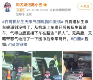 อย่างไรก็ตาม ฝ่ายที่สะกดรอยไม่ได้แสดงตัว ทำให้เธอกลับขึ้นรถด้วยอารมณ์โกรธอย่างเห็นได้ชัด พร้อมสะบัดผ้าพันคอระบายความอัดอั้น คลิปจากที่เกิดเหตุเผยให้เห็นสีหน้าที่แฟน ๆ บอกว่า “แทบไม่เคยเห็นไป๋ลู่โกรธขนาดนี้มาก่อน” หลายคนมองว่านี่คือช่วงเวลาที่คนอ่อนโยนถูกบีบจนถึงขีดจำกัด