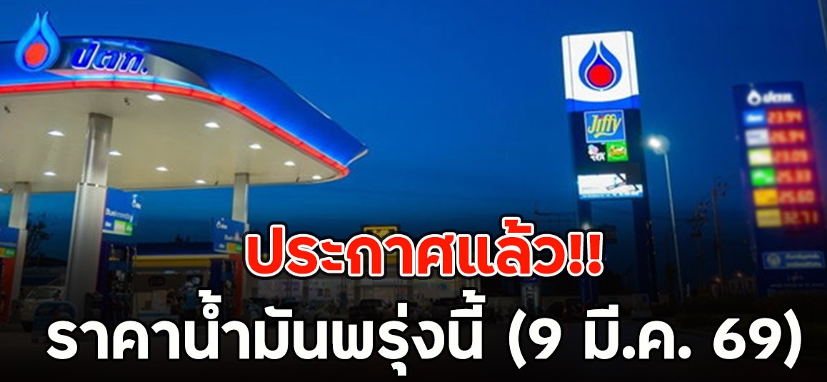 ราคาน้ำมันพรุ่งนี้ (9 มี.ค. 69) บางจาก ปตท. อัปเดตราคาล่าสุด