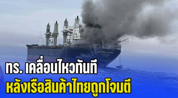 ทั้งนี้ สำหรับเรือสินค้าลำดังกล่าวชื่อ Mayuree Naree โดยศูนย์ควบคุมการจราจรและควบคุมเรือทางทะเล ศูนย์ปฏิบัติการกองทัพเรือ (ศคจร.ศปก.ทร.) รับแจ้งว่า เรือ Mayuree Naree ออกเรือจากจุดทอดสมอในเขตเมืองท่า สหรัฐอาหรับเอมิเรตส์ (ยูเออี) ก่อนถูกยิงจากอาวุธเข้าตัวเรือเหนือผิวน้ำ 2 ครั้ง เกิดเหตุระเบิดลงบริเวณท้ายเรือ และบริเวณห้องเครื่องเรือ เป็นเหตุให้ไฟไหม้ห้องเครื่อง