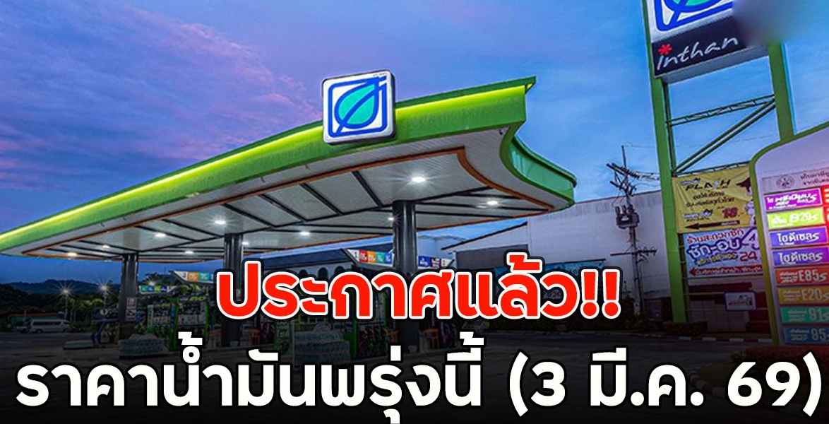 ราคาน้ำมันพรุ่งนี้ (3 มี.ค. 69) บางจาก ปตท. อัปเดตราคาล่าสุดอัปเดตราคาล่าสุด