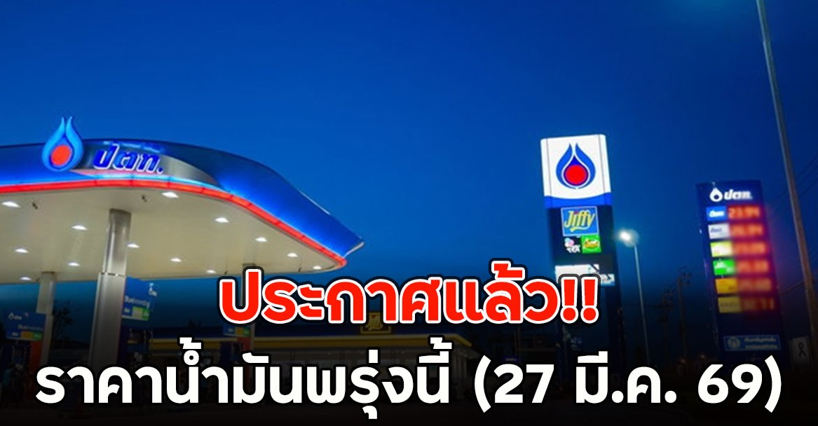 ประกาศแล้ว!! ราคาน้ำมันพรุ่งนี้ (27 มี.ค. 69)