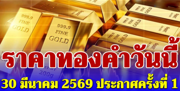 ราคาทองคำวันนี้ 30 มีนาคม 2569 โดย สมาคมค้าทองคำ ประกาศราคาทองครั้งที่ 1 (เปิดตลาด) เมื่อเวลา 09.03 น. ปรับลงแรง 300 บาท สู่บริเวณ 69,800 บาท