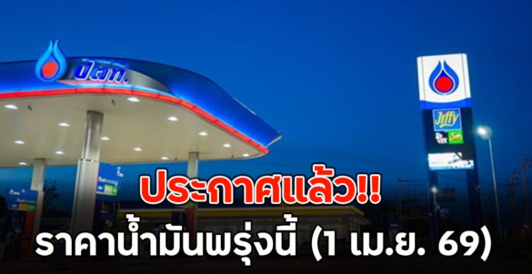 ราคาน้ำมันพรุ่งนี้ (1 เม.ย. 69) บางจาก ปตท. อัปเดตราคาล่าสุด อัปเดตราคาล่าสุด