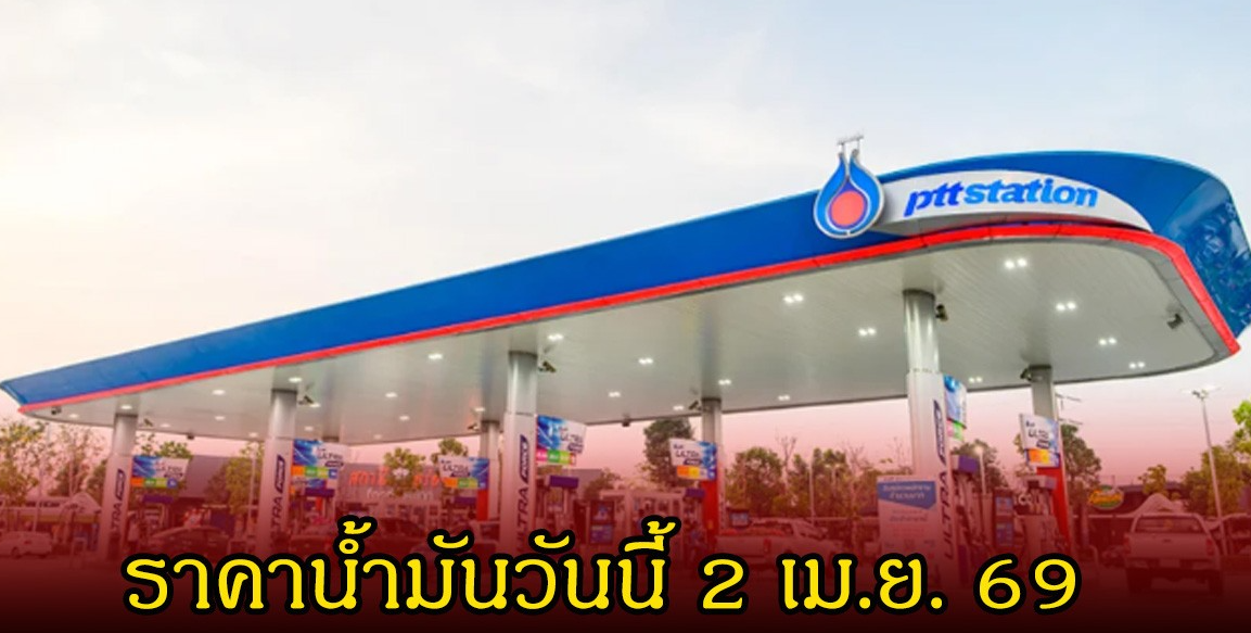 ราคาน้ำมันวันนี้ 2 เม.ย. 69 อัปเดต ราคาน้ำมันล่าสุด ราคาน้ำมันเบนซิน แก๊สโซฮอล์ ราคาน้ำมันดีเซล ราคาน้ำมันทุกชนิด จาก ปั๊มน้ำมัน ปตท. , เชลล์ (Shell) , บางจาก และ PT