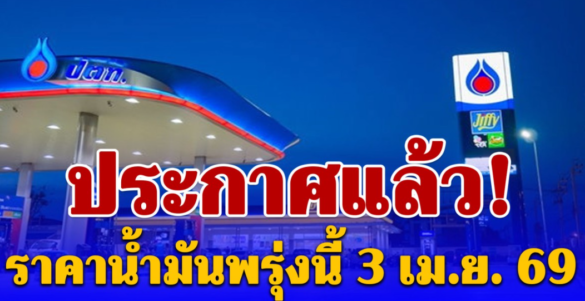 สำนักงานนโยบายและแผนพลังงาน (สนพ.) กระทรวงพลังงาน การรายงานสถานการณ์ ราคาน้ำมันพรุ่งนี้ 3 เมษายน 2569 หลังปรับขึ้นอีก 3.50 บาท/ลิตร ส่งผลให้ราคาน้ำมันขายปลีกในพื้นที่กรุงเทพฯ ที่ยังไม่รวมภาษีบำรุงท้องถิ่นพรุ่งนี้ เป็นดังนี้