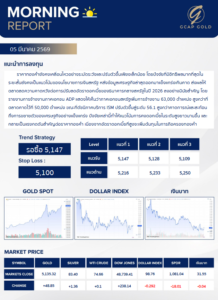 เเนะนำการลงทุนด้านทองคำ รอบเช้าวันนี้ 5 มีนาคม 2569 โดย บริษัท จีแคป จำกัด ราคาทองคำยังคงเคลื่อนไหวอย่างระมัดระวังและปรับตัวขึ้นเพียงเล็กน้อย โดยปัจจัยที่มีอิทธิพลมากที่สุดในระยะสั้นยังคงเป็นแนวโน้มของนโยบายการเงินสหรัฐ หลังข้อมูลเศรษฐกิจล่าสุดออกมาแข็งแกร่งเกินคาด ส่งผลให้ตลาดลดความคาดหวังต่อการปรับลดอัตราดอกเบี้ยของธนาคารกลางสหรังในปี 2026 ลงอย่างมีนัยสำคัญ