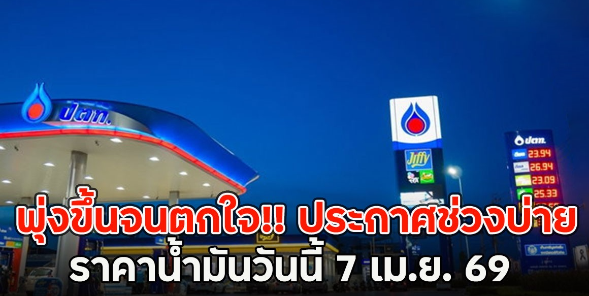 พุ่งขึ้นจนตกใจ!! ประกาศช่วงบ่าย ราคาน้ำมันวันนี้ 7เม.ย. 69