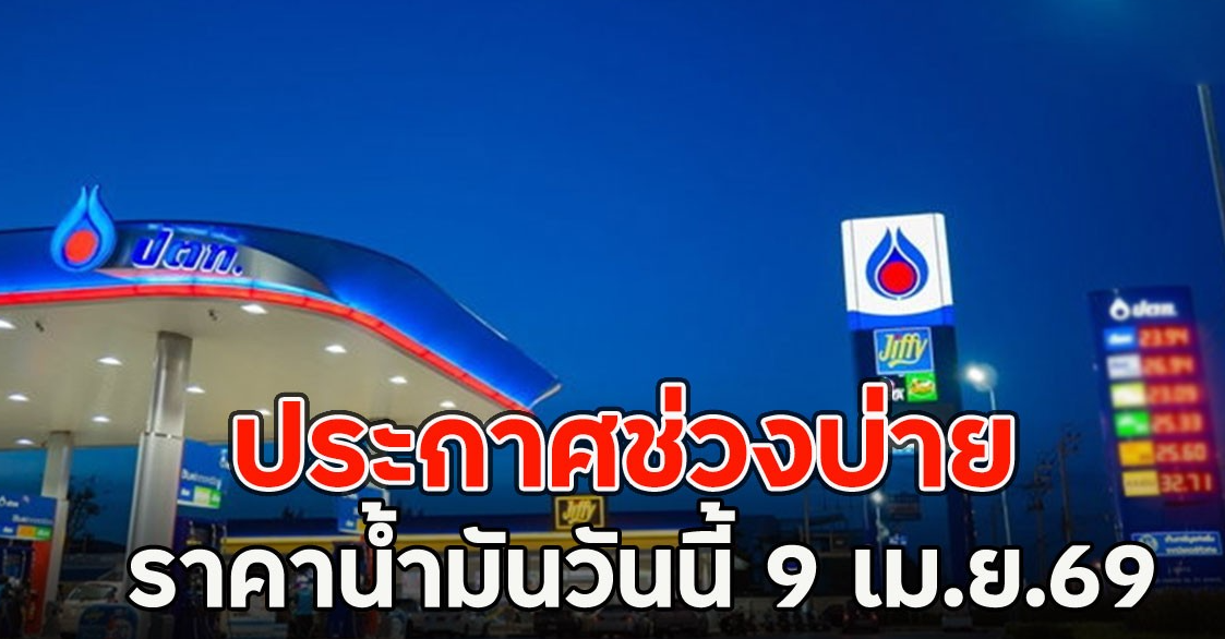 ประกาศช่วงบ่าย ราคาน้ำมันวันนี้ 9 เม.ย.69