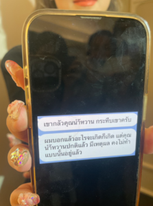 แต่ที่ต้องพูดเพราะต้องการสร้างบรรทัดฐานให้สังคมรู้ว่า พฤติกรรมละเมิดความเป็นส่วนตัวและการคุกคามทางเพศในคราบของเพื่อนร่วมงานเป็นสิ่งที่ยอมรับไม่ได้ และผู้หญิงทุกคนควรลุกขึ้นมาปกป้องสิทธิ์ของตัวเอง วันนี้น้ำหวานไม่ได้สู้เพื่อตัวเองคนเดียว แต่น้ำหวานสู้เพื่อศักดิ์ศรีของคำว่าแม่และภรรยา ใครจะมองว่าน้ำหวานแรงน้ำหวานไม่สน แต่น้ำหวานจะไม่ยอมให้คนที่มีพฤติกรรมแบบนี้มาลอยนวลและทำลายความสงบสุขในครอบครัวของน้ำหวานอีกต่อไป