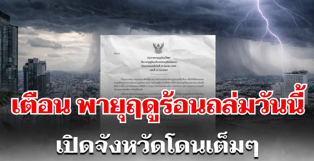 เมื่อวันที่ 20 เมษายน 2569 ศูนย์ประชาสัมพันธ์กรม อุตุนิยมวิทยา ประกาศกรมอุตุนิยมวิทยา เรื่อง พายุฤดูร้อนบริเวณประเทศไทยตอนบน (มีผลกระทบจนถึงวันที่ 20 เมษายน 2569) ฉบับที่ 13 (32/2569)
