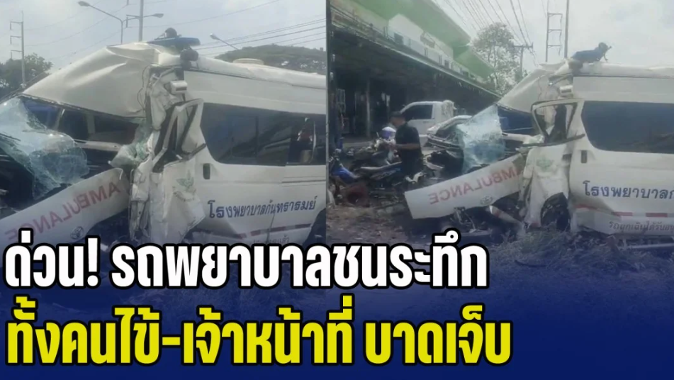 ด่วน! รถพยาบาลชนระทึกกลางเมืองศรีสะเกษ ทั้งคนไข้-เจ้าหน้าที่ บาดเจ็บติดภายใน กู้ภัยเร่งช่วยเหลือ