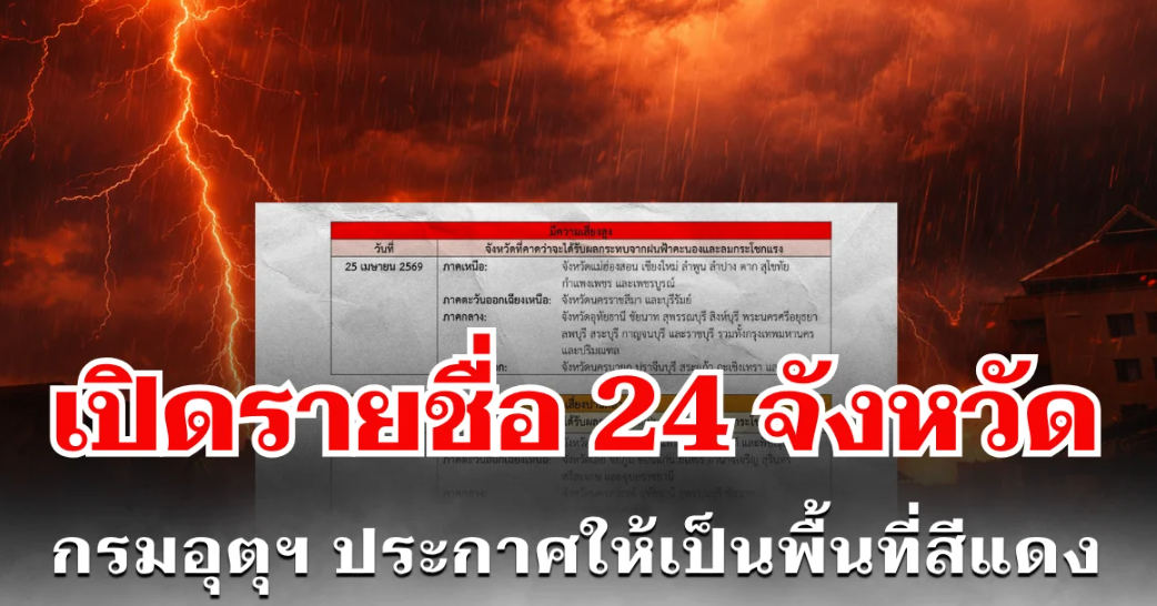 ประกาศ ณ วันที่ 25 เมษายน พ.ศ. 2569 เวลา 17.00 น. กรมอุตุนิยมวิทยาจะออกประกาศฉบับนี้เป็นฉบับสุดท้ายของเหตุการณ์นี้ (ลงชื่อ) สุกันยาณี ยะวิญชาญ (นางสาวสุกันยาณี ยะวิญชาญ) อธิบดีกรมอุตุนิยมวิทยา